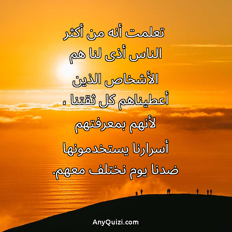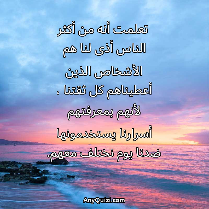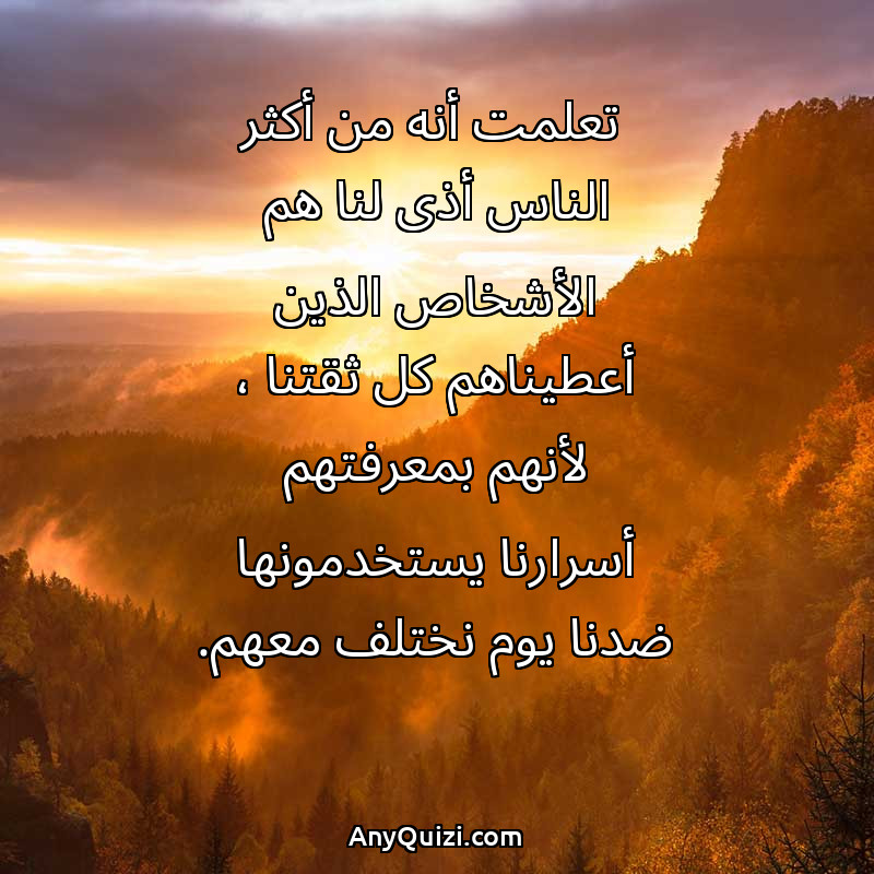 تعلمت أنه من أكثر الناس أذى لنا هم الأشخاص الذين أعطيناهم كل ثقتنا ، لأنهم بمعرفتهم أسرارنا يستخدمونها ضدنا يوم نختلف معهم.