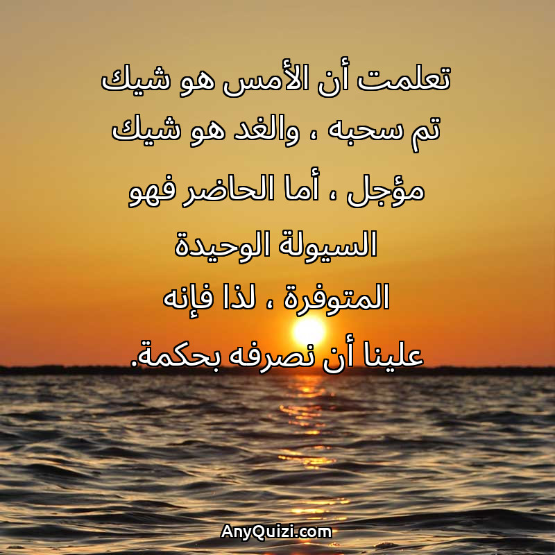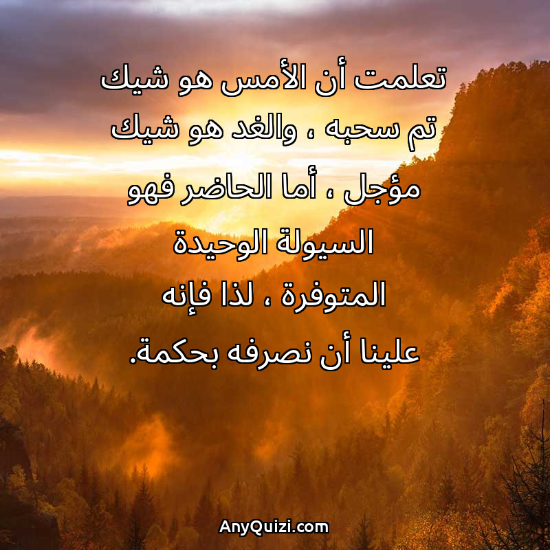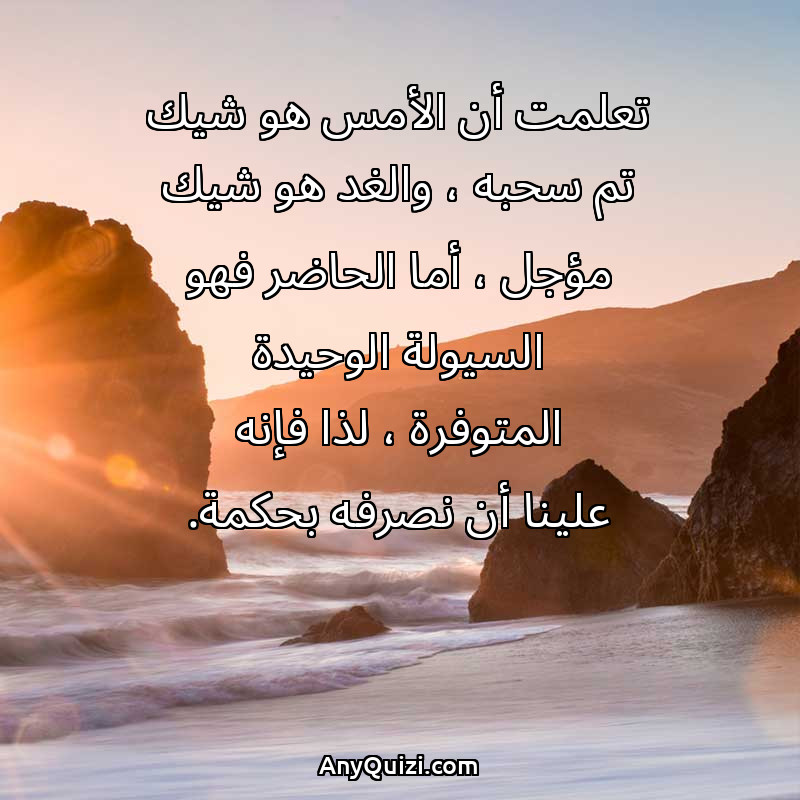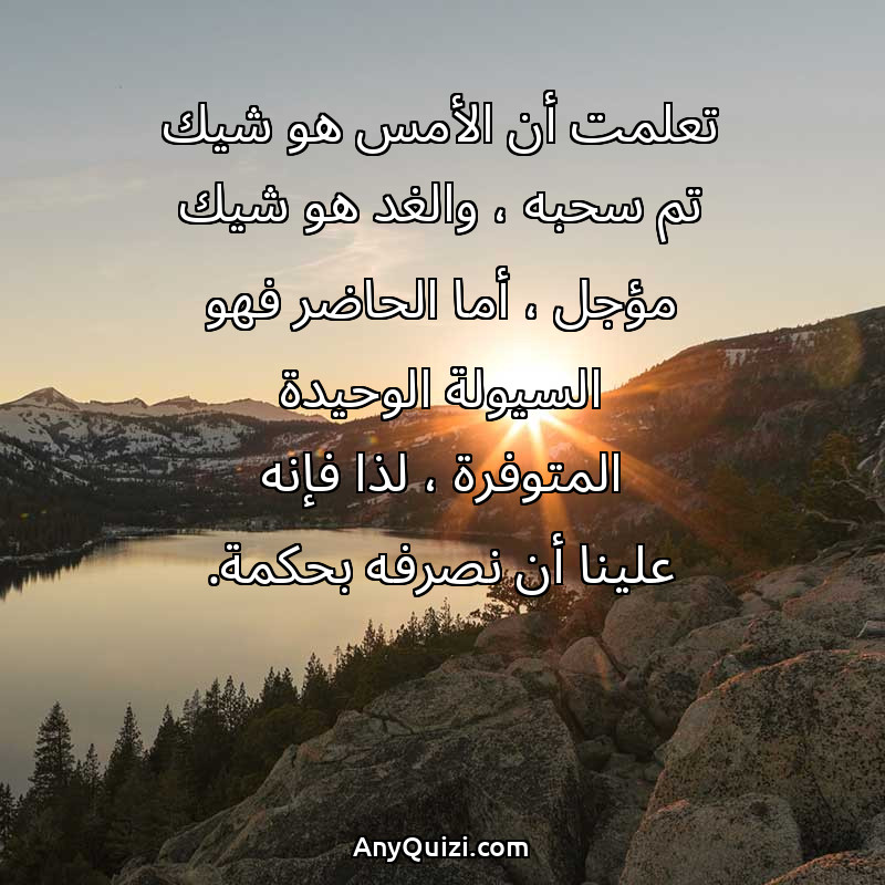 تعلمت أن الأمس هو شيك تم سحبه ، والغد هو شيك مؤجل ، أما الحاضر فهو السيولة الوحيدة المتوفرة ، لذا فإنه علينا أن نصرفه بحكمة.