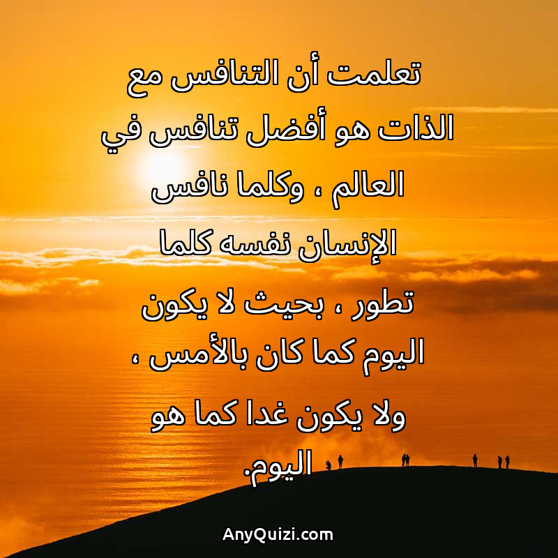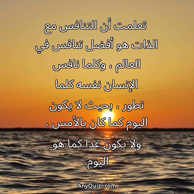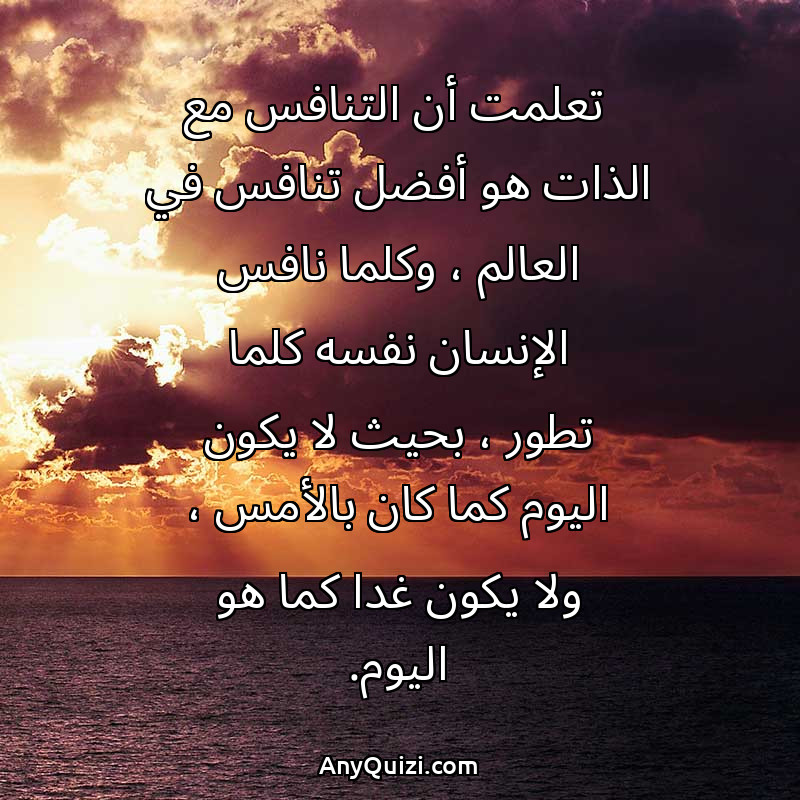 تعلمت أن التنافس مع الذات هو أفضل تنافس في العالم ، وكلما نافس الإنسان نفسه كلما تطور ، بحيث لا يكون اليوم كما كان بالأمس ، ولا يكون غدا كما هو اليوم.