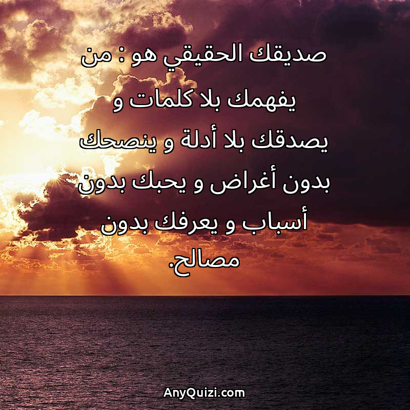 صديقك الحقيقي هو : من يفهمك بلا كلمات و يصدقك بلا أدلة و ينصحك بدون أغراض و يحبك بدون أسباب و يعرفك بدون مصالح.
